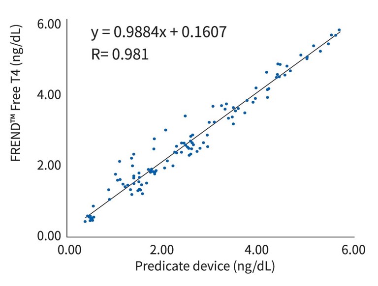 FREND™ Free T4를 통해서 미량의 혈액 샘플 (혈장, 혈청)을 사용하여 갑상선 호르몬 중의 하나인 유리된 형태의 Free T4를 신속하게 검사할 수 있는 체외진단 제품