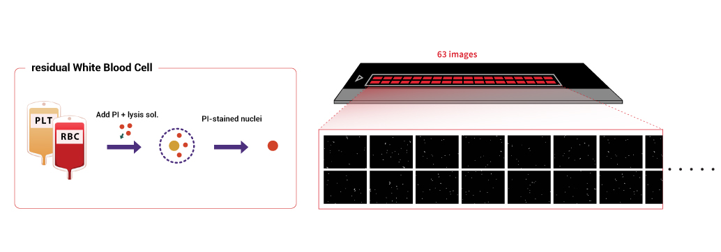 백혈구가 제거된 낮은 농도의 혈액팩에서도 잔존 백혈구를 정확하게 계수하여 결과를 산출합니다.