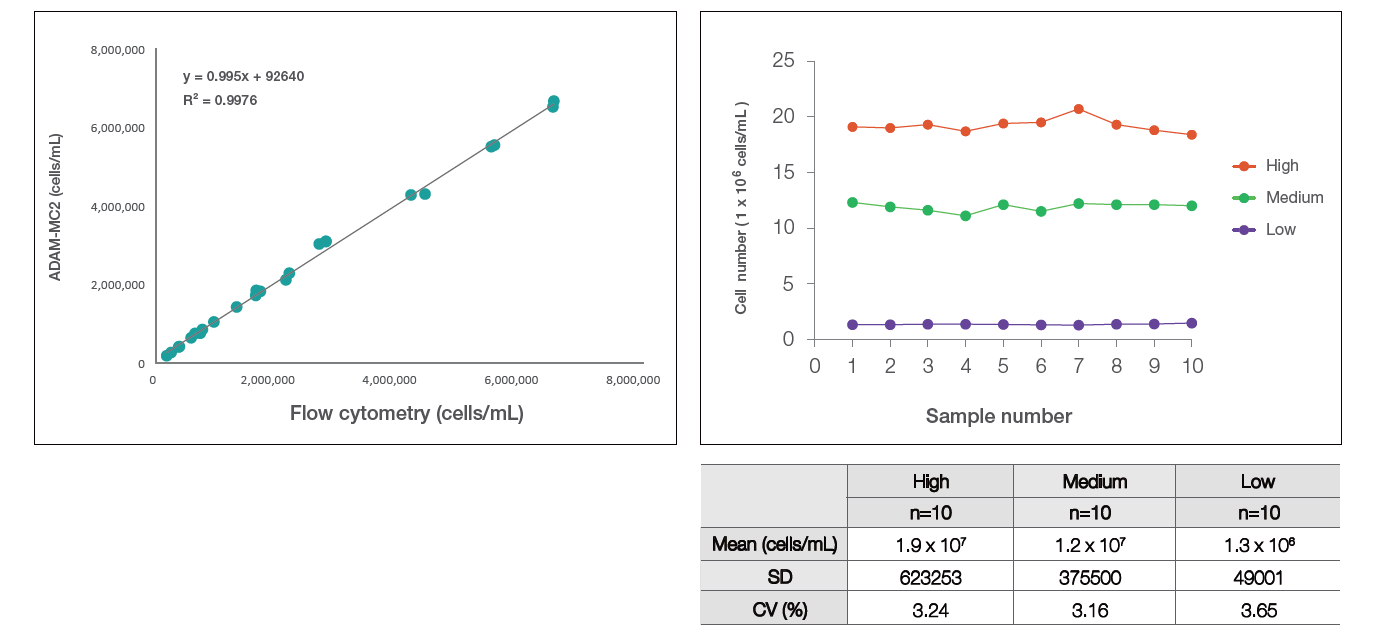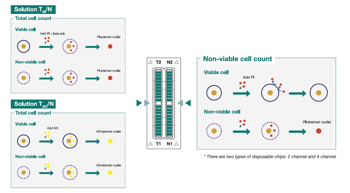 5 X 10E4–2 X 10E7 cells/mL (AO/PI)