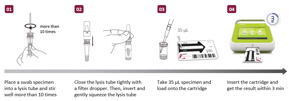 - 3분 내 COVID-19 Ag+FLU A&B 정성 검사