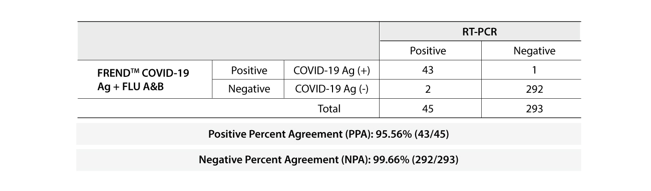 - COVID-19 Ag | 정확도 95.56%(양성) & 99.66%(음성)