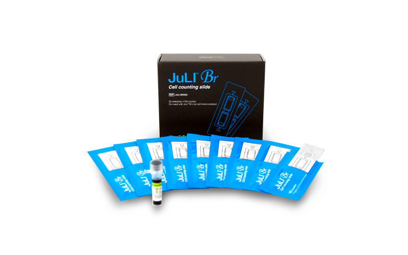 JuLI Br counting slide는 자동 세포 계수기에 사용되는 일회용 카운팅 슬라이드로
