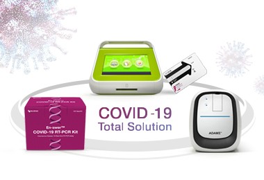 NanoEntek provides a total solution from diagnosis to vaccine development and patient monitoring of COVID-19. En-swer™ COVID-19 RT-PCR Kit detects the presence of SARS-CoV-2 virus itself through real-time reverse-transcription polymerase chain reaction. FREND™ COVID-19 IgG/IgM Duo can be used to check whether patients have developed immune responses to SARS-Cov-2 using human plasma. ADAMII™-CD3/CD4/CD8 counts the T-cells to monitor the immune status of human immunodeficiency that can be used for vaccine development and monitoring for the COVID-19 patients.Is RT-PCR enough? Is serology test enough? Now add T-cell ! Common Usage of T-Cell Count Counting the T cell subsets accurately and rapidly is important. The T-cell count has already been used to monitor patients and its importance is increasing in the COVID-19 era. Originally, the T cell count has been used to monitor T-cell responses in immunocompromised patients like AIDS or patients suffering from immunodeficiency (1). For example, CD4 T lymphocytes count is used to determine or consider the need of antiretroviral therapy (ART) for AIDS patients (2). In addition, frequent monitoring of CD4+ T cells is essential to overall monitor the disease progression as well as immune suppression (3). Allogeneic stem cell transplantation is performed to restore blood cells in cancer patients who have gone through chemotherapy. However, graft-versus-host disease mediated by T cells are major complication causing fatal consequences after allogeneic stem cell transplantation. Several researches have suggested that the high CD3+ graft content was associated with the increased risk of either acute or chronic graft-versus-host disease without any beneficial effect on the disease control (4,5). These studies suggest that the assessment of CD3+graft content may aid in reducing severe GVHD risk without having the negative impact on transplantation outcomes.Why T- cell count in the post-COVID-19 era? Understanding how COVID-19 affects our body is essential to fight COVID-19. Researchers are putting effort to reveal how COVID-19 can cause severe respiratory symptoms in human. Zhang et al. has shown that the prominent feature of COVID-19 was progressive lymphocytopenia and notably CD3 T cells were affected the most as well as CD4 and CD8 T cells (6). There were also two different studies which monitored the patients in different conditions using the immunological parameters. When it comes to the ICU patients, the severity of COVID-19 showed inverse relationship with T-cell count (7). However, another study showed that the high number of CD4 and CD8 T cells were found in the COVID-19 patients at the convalescent stages (8). Such studies have highlighted the importance of counting T cells in the COVID-19 era and further researches are required to elucidate the relationship between COVID-19 and CD4 and 8 T cells. Monitoring T-cell is essential in Vaccine development The development of COVID-19 vaccine has become inevitable. As vaccine aims to elicit immune responses through CD4 T cells, understanding the dynamics of T-cell is essential in the vaccine development. Currently, more than 152 vaccines are under the development and the spike protein is the major antigen of interest (9). Actual studies were performed to show whether the spike protein elicits specific CD4 T cells or CD8 T cells responses. Grifoni et al. proved that spike protein can specifically elicit specific CD4 T cells which show high correlation with the IgG responses (8). Feng-Cai Zhu et al. published the result of first-in-human trial using adenovirus type-5 vectored COVID-19 vaccine by testing through dose-escalation and monitored up to 28 days (10). It was found that INF-γ+CD4 T and CD8 T cells increased after 14 days.Then why ADAMII™-CD3/CD4/CD8? The ADAMII™-CD3/CD4/CD8 identify the absolute counts of human T lymphocytes(CD3+), helper/inducer(CD3+CD4+) T lymphocytes, and suppressor/cytotoxic(CD3+CD8+) T lymphocytes in RBC-lysed whole blood. It targets of T cell responses to SARS-CoV-2 in human, so it can be used for vaccine development and monitoring for the COVID-19 patients.Save TIME, save MONEY. It's easy to use! Our ADAMII™-CD3/CD4/CD8 provides absolute T cell counts within 17 minutes and help you to save your time and money. It will support you to better understand about the COVID-19.It provides accurate absolute number of CD3+/CD4+/CD8+ cells with rapid turnaround and minimal hands-on time for the operator. The high degree of precision of the system is due in part to the simplifying sample preparation steps, elimination of washing and reconstituting steps which may cause cell loss and human error. Reference (1) World Health Organization (2017). Guidelines for managing advanced HIV disease and rapid initiation of antiretroviral therapy. https://www.who.int/hiv/pub/arv/arv-2016/en/ (2) World Health Organization, Regional Office for South-East Asia. (2009). Laboratory guidelines for enumeration CD4 T lymphocytes in the context of HIV/AIDS (revised version 2009). WHO Regional Office for South-East Asia. https://apps.who.int/iris/handle/10665/205403 (3) Ramalingam, V.V., Mani, M., Sundaresan, V.C., Karunaiya, R.J., Sachithanandham, J. and Kannangai, R. (2012). Daily Quality Control in CD3+and CD4+T Cell Estimation by the FACS Count System at a Tertiary Care Center in South India. Clinical and Vaccine Immunology, 19(10), pp.1693–1696. (4) Paz Morante, M., Briones, J., Canto, E., Sabzevari, H., Martino, R., Sierra, J., Rodriguez-Sanchez, J.L. and Vidal, S. (2006). Activation-associated phenotype of CD3+ T cells in acute graft-versus-host disease. Clinical and Experimental Immunology, 145(1), pp.36–43. (5) Czerw, T., Labopin, M., Schmid, C., Cornelissen, J.J., Chevallier, P., Blaise, D., Kuball, J., Vigouroux, S., Garban, F., Lioure, B., Fegueux, N., Clement, L., Sandstedt, A., Maertens, J., Guillerm, G., Bordessoule, D., Mohty, M. and Nagler, A. (2016). High CD3+ and CD34+ per